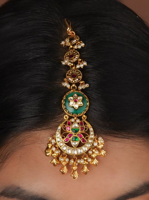 Navratna Gold Plated Jadau Kundan Necklace Set - MS2133N -